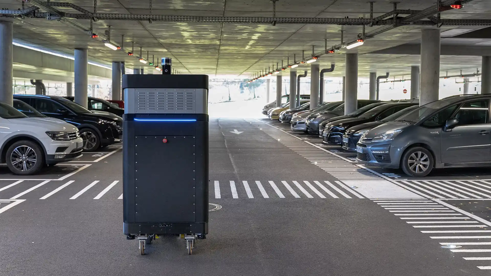 Charles, the charging robot is the first autonomous charging robot to be deployed in Europe. A revolutionary recharging solution for electric vehicles: with Charles, it’s the charging point that comes to the vehicle, not the other way round. With a single cable connected to the network, an entire floor can benefit from a recharging solution, without any charging points being monopolized.