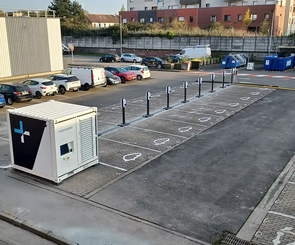 - Maîtrise des Coûts : Un seul raccordement de faible puissance est nécessaire pour alimenter l’ensemble des bornes. Cela permet de réduire par deux les coûts d’infrastructure par rapport aux solutions classiques.